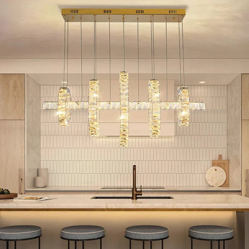 Crafted with premium materials and attention to detail, the fixture features durable iron construction paired with refined crystal accents for a sophisticated finish that stands out without overwhelming the room. The integrated LED system delivers consistent brightness while remaining energy efficient and long lasting.