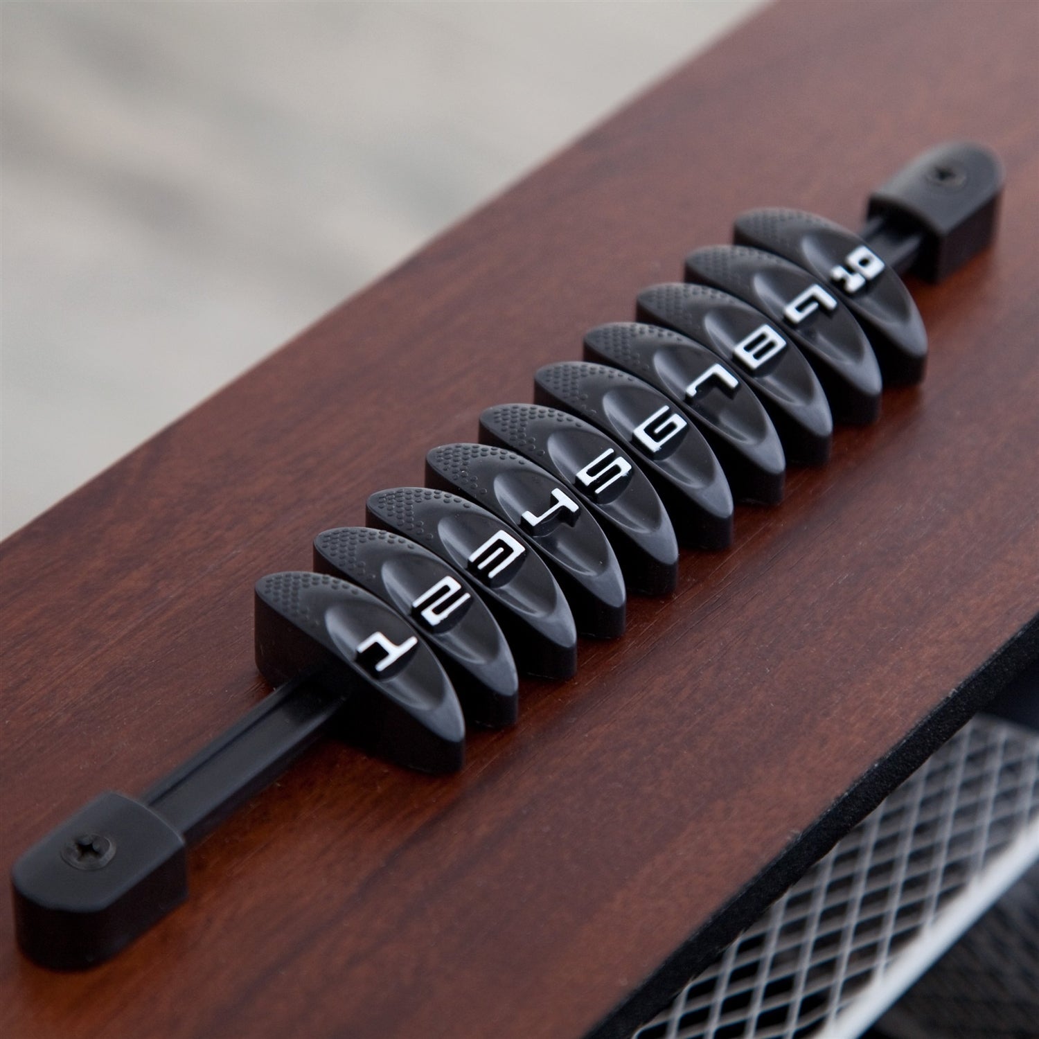 Easily distinguishable black and ivory foosball players